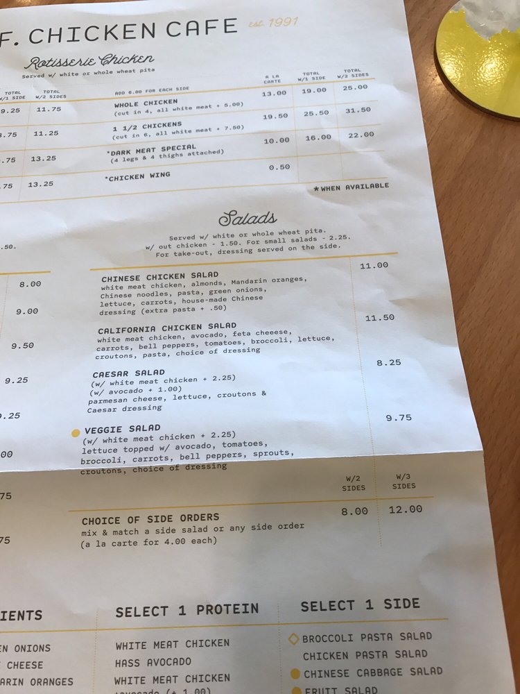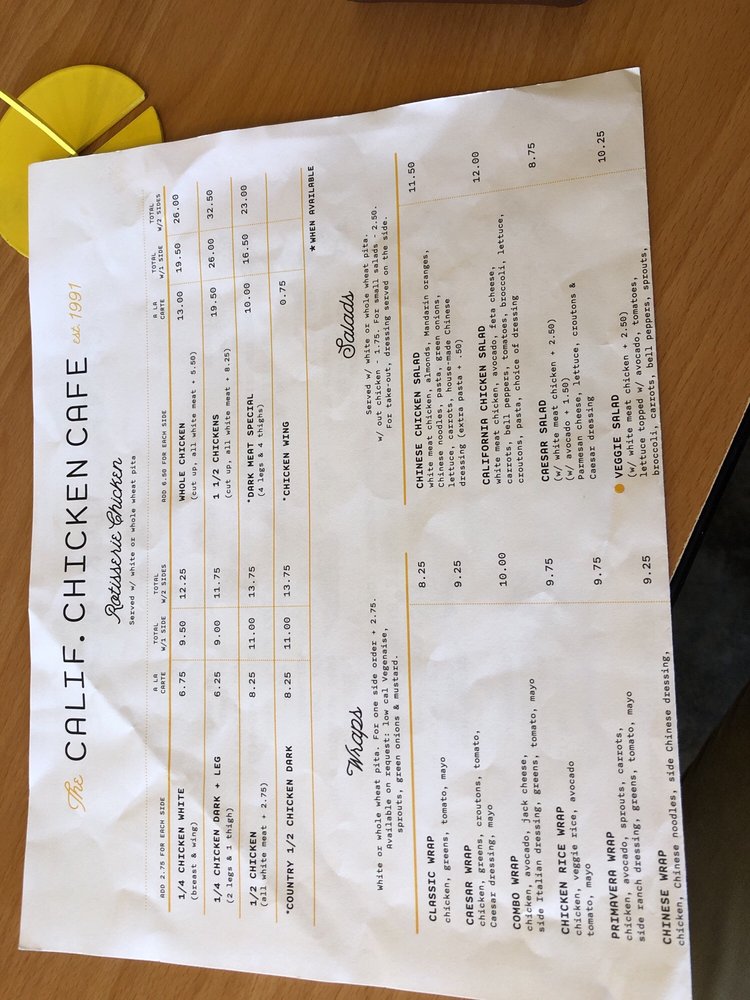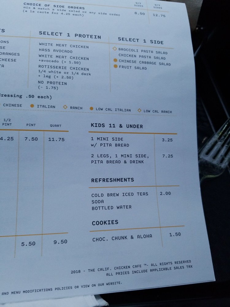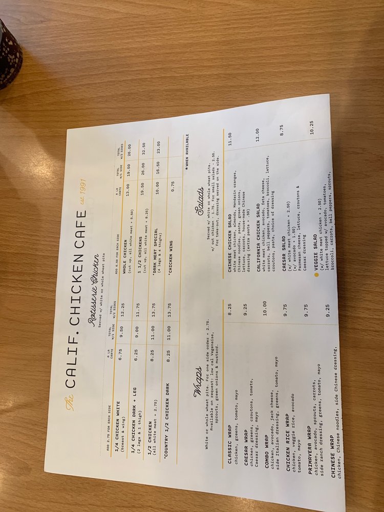 Calif Chicken Cafe, located in Los Angeles, is a popular spot known for its delicious wraps and salads. With a variety of options like the Melrose Wrap, Chinese Chicken Salad, and California Chicken Salad with low-cal Italian dressing, there is something for everyone. Customers rave about the generous portions, fresh ingredients, and quick service, making it a go-to for lunch or dinner. The menu also includes sides, desserts, and drinks, all of which have received high praise. Despite the lack of indoor dining, the easy online ordering and drive-up pick-up make enjoying their food convenient. With a designated parking area for pick-ups, Calif Chicken Cafe ensures a seamless experience for their customers. Don't miss out on their tasty offerings – you won't be disappointed!